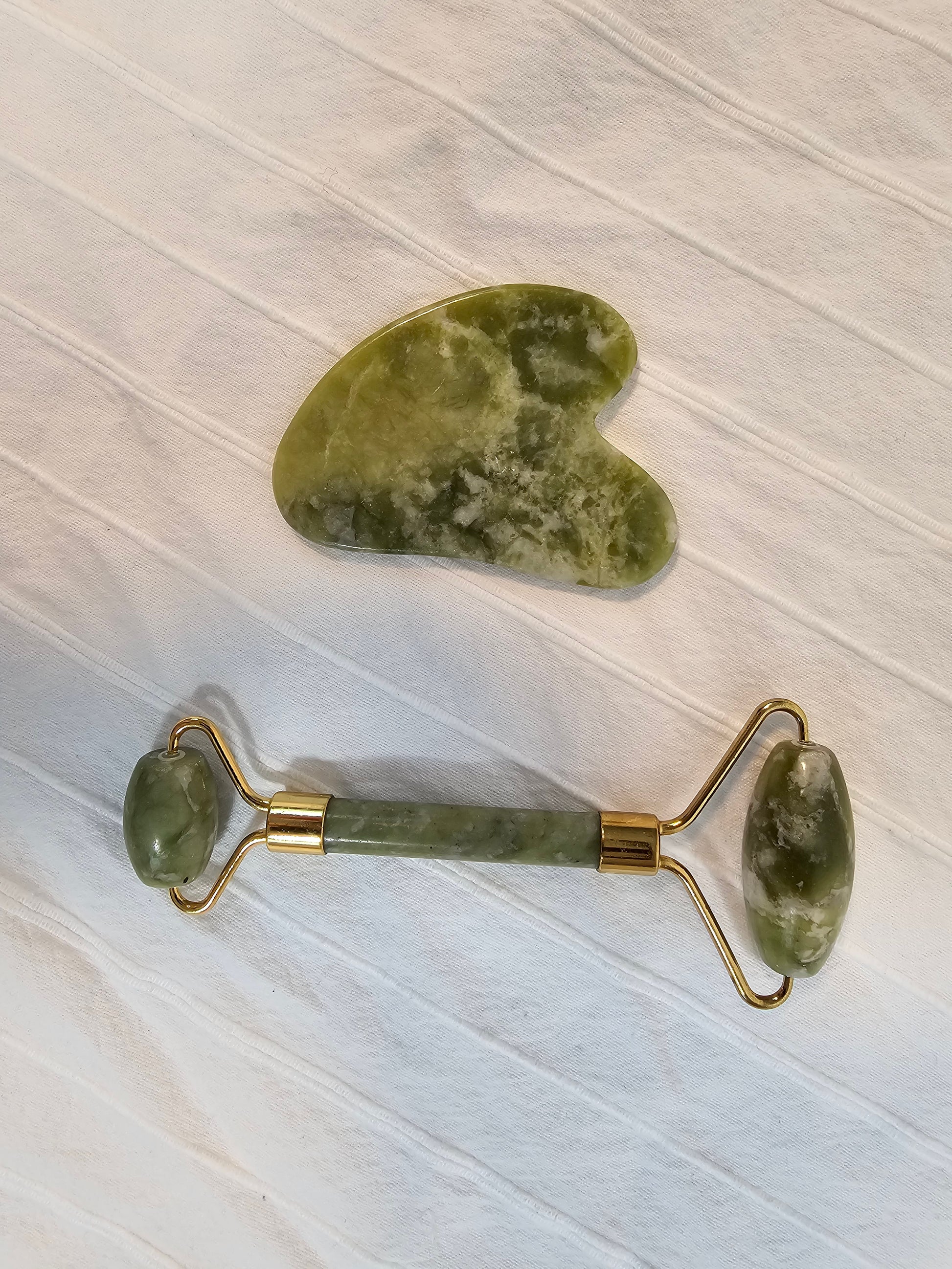 - Ölschaber aus Jade: Verwende diesen Ölschaber aus Jade, um das Premium Narben-Olivenöl sanft einzuarbeiten. Die kühlende Wirkung des Jades beruhigt die Haut und verbessert die Aufnahme der wertvollen Inhaltsstoffe.